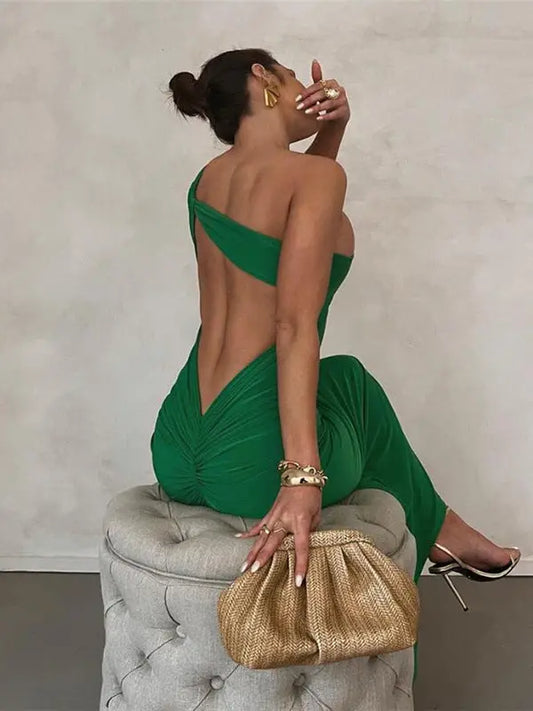 Backless Sexy Sleeveless Cut Out Dress in Green