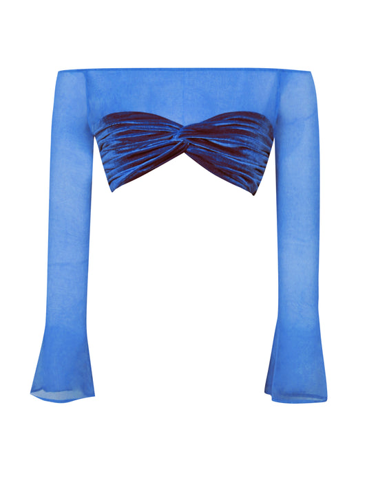 Brucie Royal Blue Velvet Mesh Sleeve Crop Top