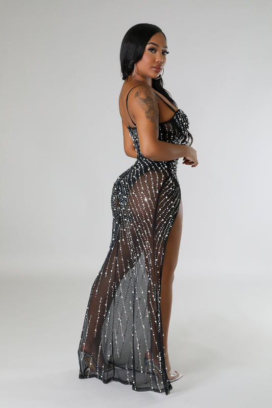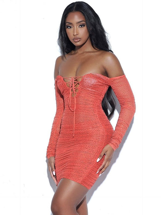 Bianca Poppy Off Shoulder Mesh Dress With Crystals