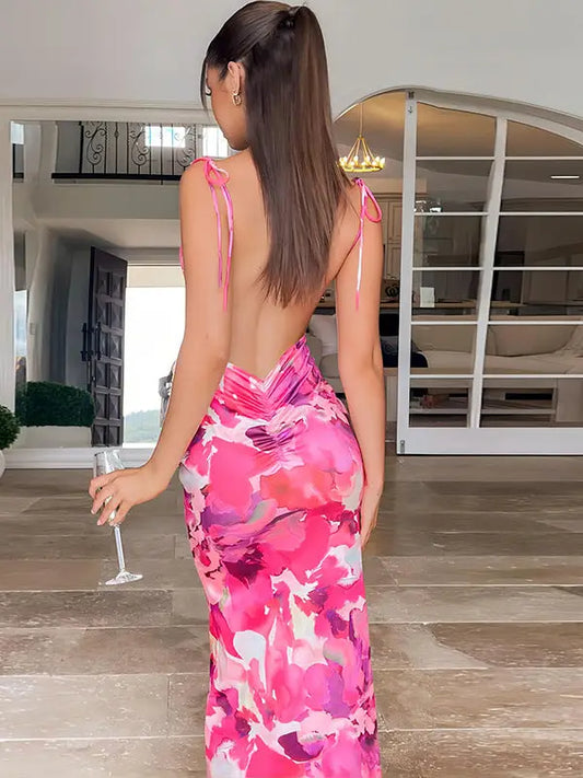 Sexy Cutout Ruffle Edge Backless Bodycon Pencil Dress