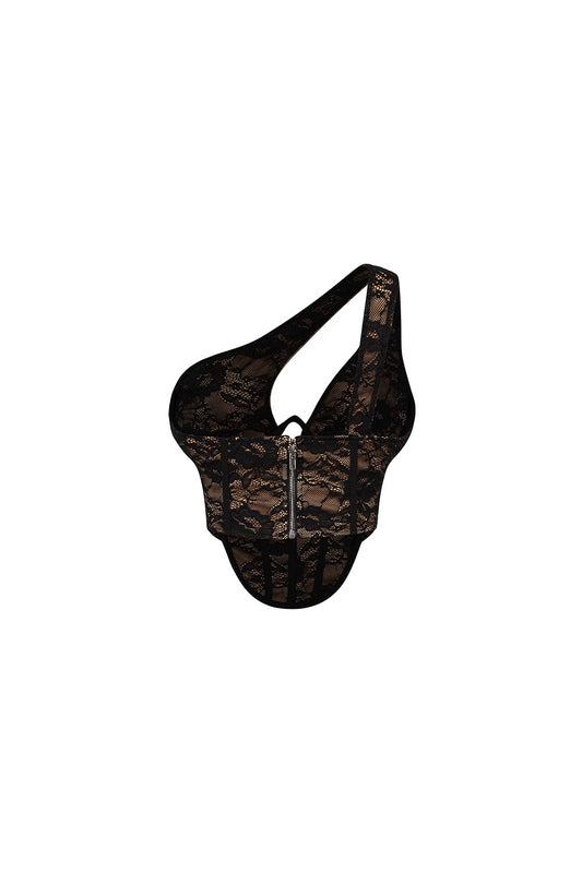 Larsa Mesh Corset Long Sleeve Top in Grey