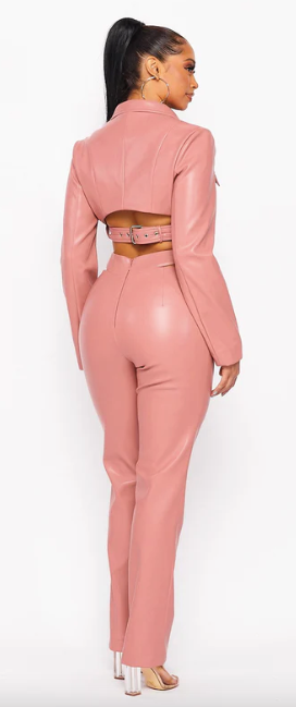 Charisse City Chic Faux Leather Two Piece Set in Pink