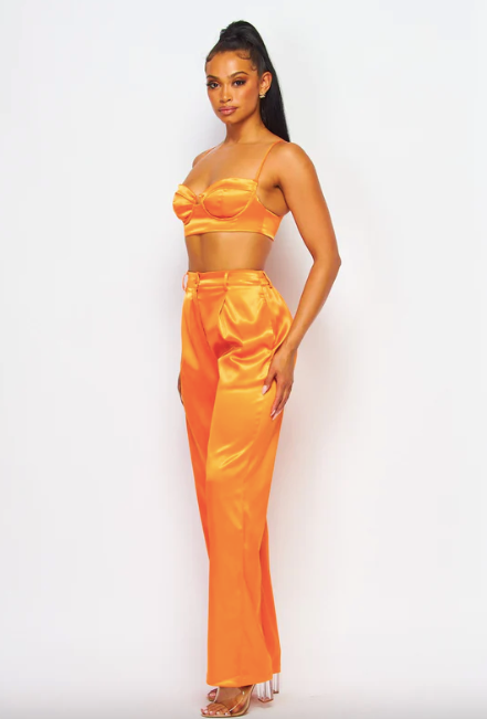 Bridget Bossy Satin Two Piece Matching Pants Set