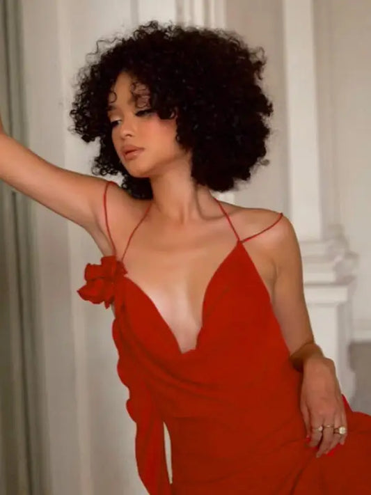 Ny Zhea Cut Out Rose Detail Sexy Long Dress Red