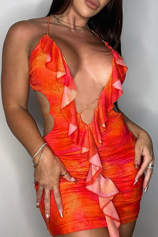 Sexy Cutout Ruffle Edge Backless Bodycon Pencil Dress