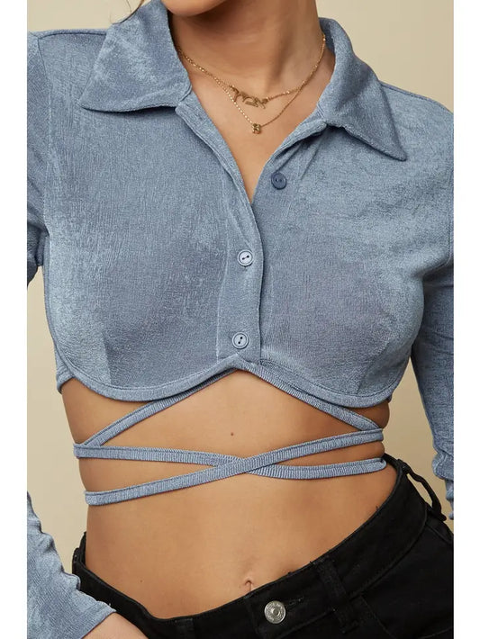Iris Underwire Detail Long Sleeve Button Up Crop Top
